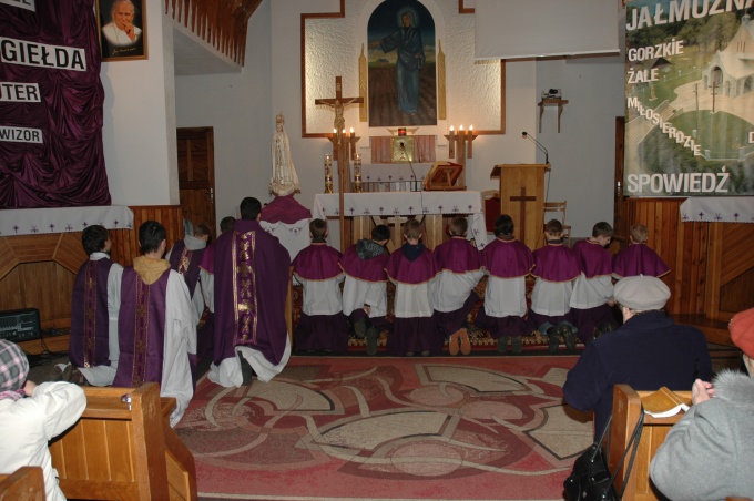 W niedzielę 11 marca w kościele parafialnym odbyła się Msza swięta dla dzieci. Schola Ziarenka Maryi zajęły się oprawą muzyczną. W czasie kazania została przedstawiona scenka o warunkach sakramentu pokuty, jako refleksja przed rekolekcjami i spowiedzią wielkopostną.